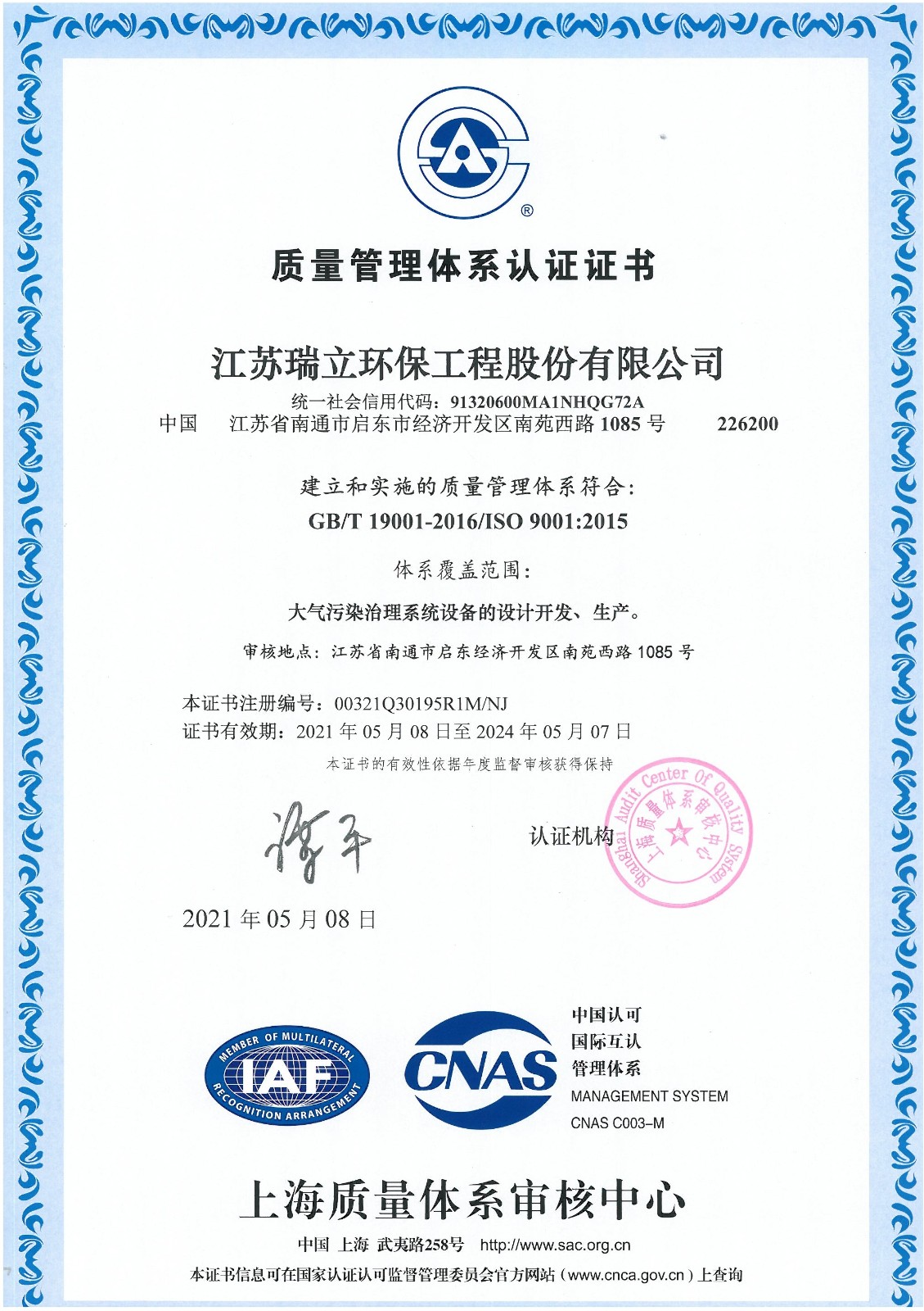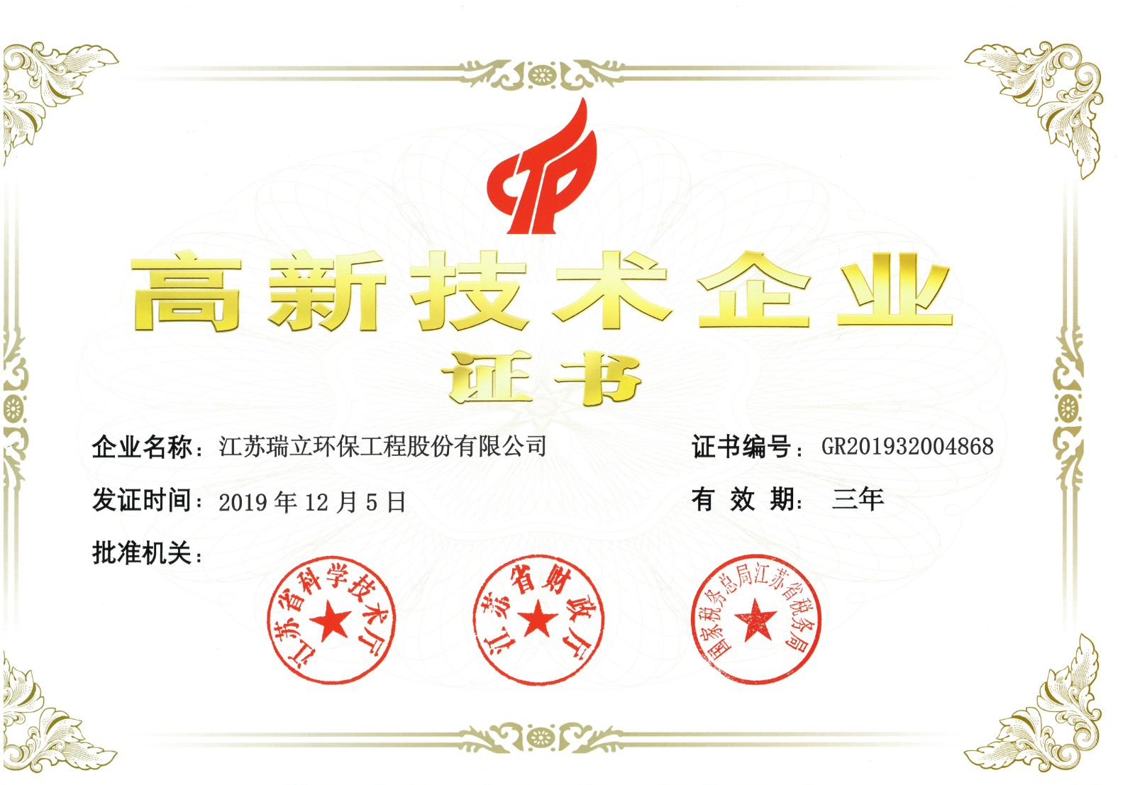 瑞立環保 · 資質榮譽公司取得了環保專業承包資質、ISO9001質量管理體系認證、環保工程設計資質、高新技術企業等。